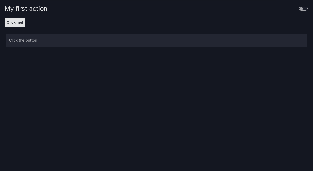 We have specified that a button should be included in the page layout but haven't configured what should happen when it is clicked. Let's define an action for that and attach it to the button with the actions argument and the Action model.