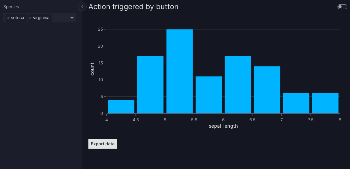 Many Vizro models have an actions argument that can contain one or more actions. Each action is a Python function that is triggered by a user interaction.