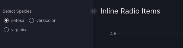 An example would be to make the RadioItem display inline instead of stacked vertically. For this you can use extra={"inline": True} argument: