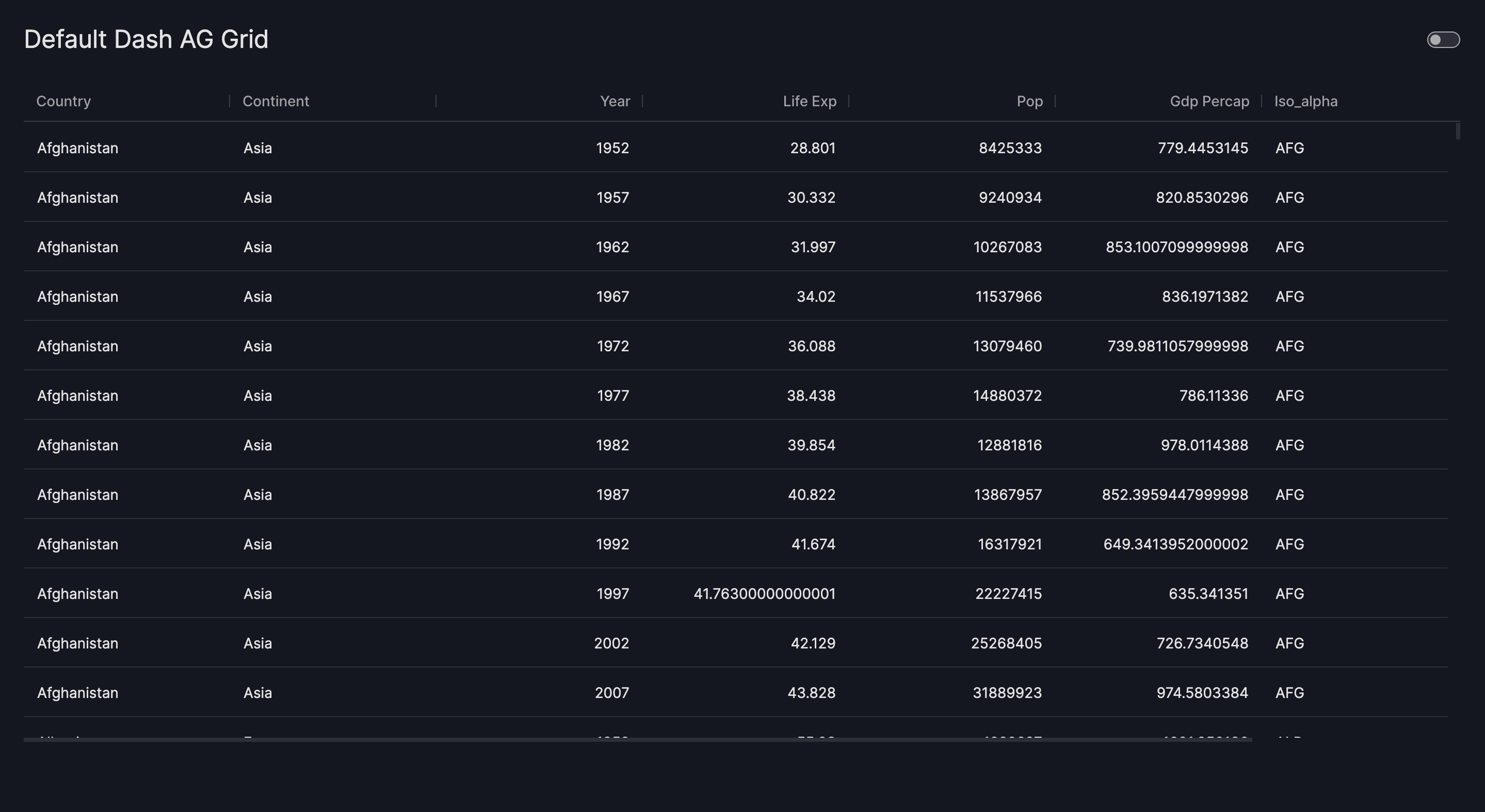 figure=dash_ag_grid(data_frame=gapminder_2007, dashGridOptions={"pagination": True}),